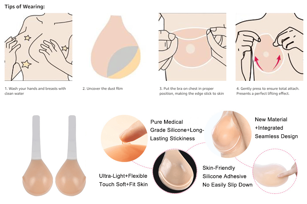 Get an amazing lift under any outfit with Invisible bra. Our sticky, silicone cups provide a natural, discreet lift and maximum support without needing a traditional bra.